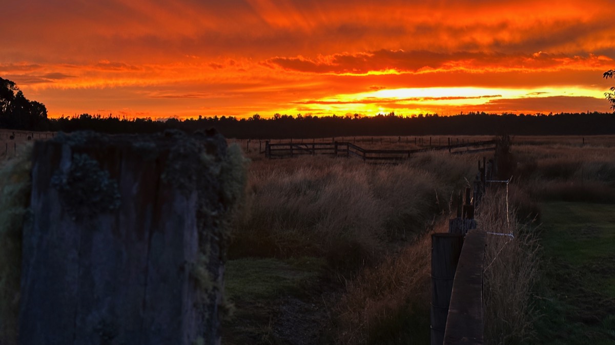 27 – Fahrt zu unserer nächsten Unterkunft in Whangamomona ( diese Gegend hat eine eigene Republik ausgerufen und so schaut es auch aus, Eine Unterkunft die uns gar nicht gefällt, es scheint als würden uns die Kakerlaken schon am Eingang begrüßen, wir stornieren kurzfristig und fahren weiter bis zum Tongariro NP – Mountain Hights übernachtet mit Wahnsinns Sunset, der Himmel brennt.