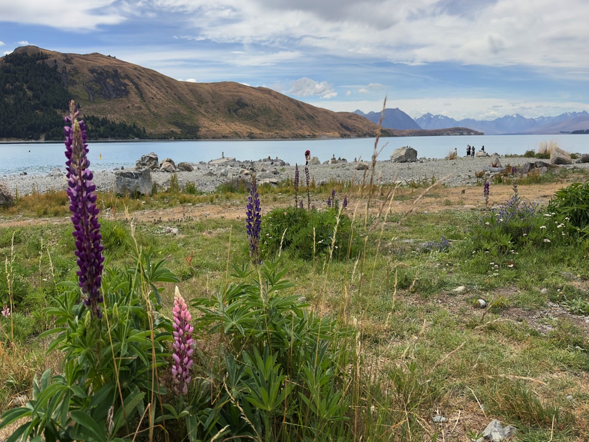Früh am Morgen nach Castle Hill mit sehr schönen Steinformationen, der Weg dorthin viel Farmland danach Lake Tekapo mit Wanderung am See, ausgezeichnetes Wild im Blue Lake – selten so einen guten Hirsch gegessen. ÜN in Alice Garden und abends noch einen wunderschönen Sunset gesehen.